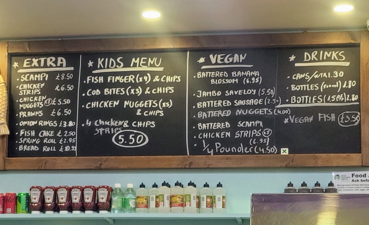 Sutton Fish Bar & Restaurant offers a diverse and appealing menu catering to various tastes. For those who enjoy grilled dishes, options like Grilled Haddock and Grilled Tuna Loin are available, although prices are not listed. The burger selection is just as tempting with choices such as the Beef Burger, Chicken Burger, and Fish Burger. As for sides, you can enjoy simple yet satisfying options like Beans, Pickled Egg, and Onion. For those exploring plant-based options, the restaurant's New Vegan Menu stands out with dishes like the Vegan 'Fish' Banana Blossom, Seasonal Salad, and Vegan Chicken Strips, as well as Vegan Jumbo Saveloy Sausages and Meat Free Vegan Sausage. The menu also includes traditional favorites like Plaice, Mayo, Fish Cake, and Jambo Saveloy, alongside the beloved Battered Sausage. Sutton Fish Bar’s menu ensures there’s something for everyone, from meat lovers to those seeking a vegan alternative.